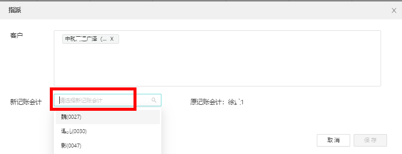 Ps:如果需要取消之前的指派会计,重新选择【新记账会计】即可替代之前的指派人员(即原记账会计)