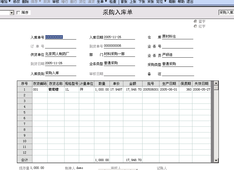 一、采购入库单