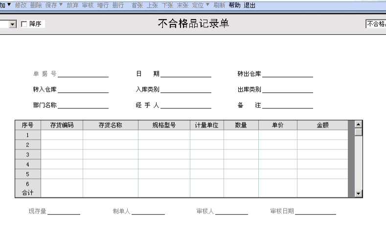 十、不合格品记录单