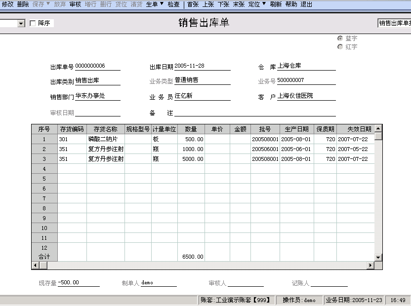 四、销售出库单