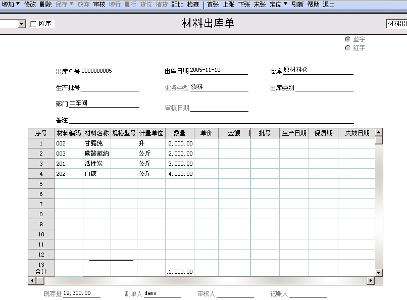 五、材料出库单