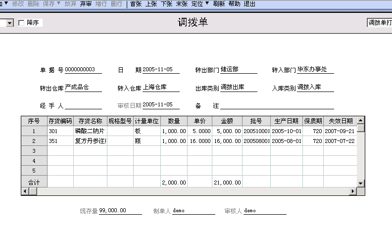 七、调拨单