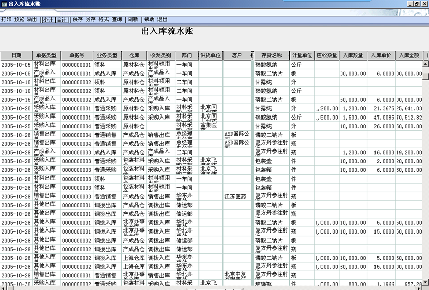十三、出入库流水帐