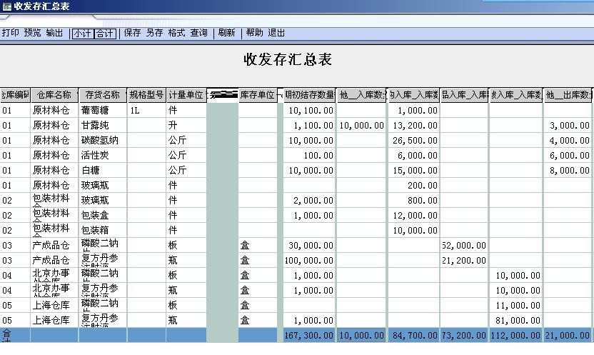 十五、收发存汇总表