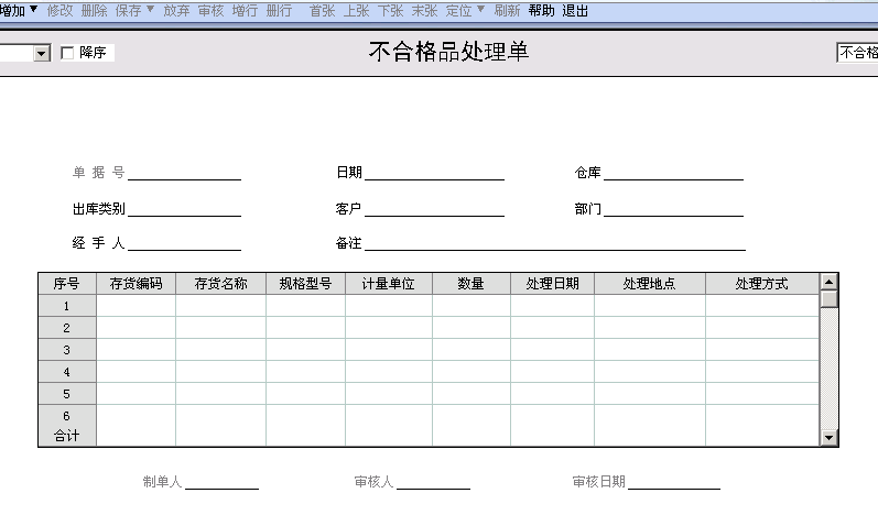 十一、不合格品处理单
