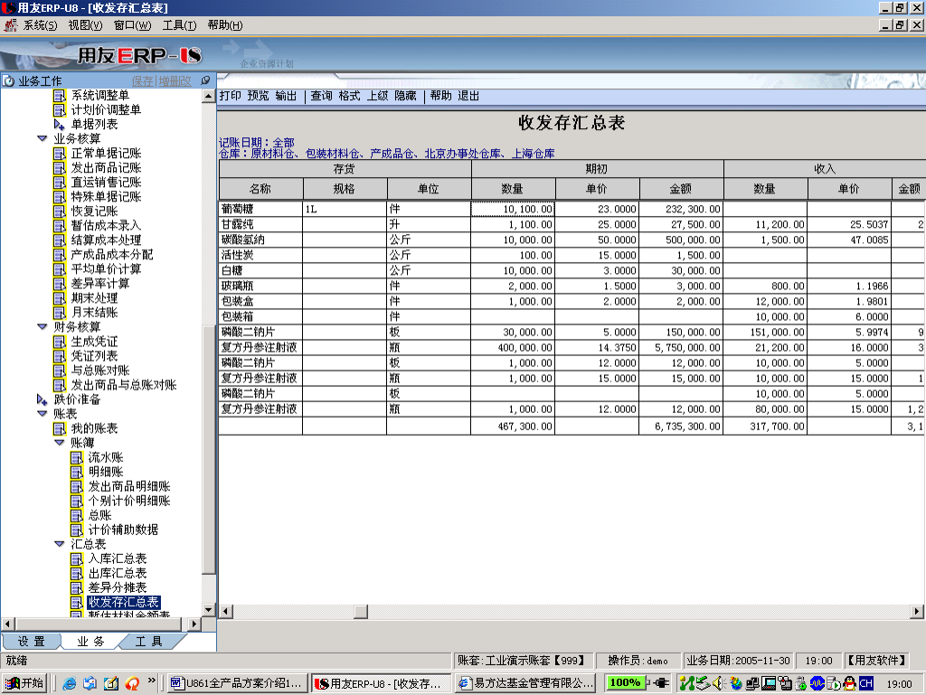 十、常用报表查询,如收发存汇总表、明细账、各种分析表