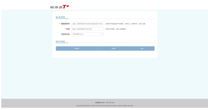 输入购买产品的畅捷通帐号和密码,验证正确后,在已购买企业里显示出购买产品的订单企业信息。如果找不到正确的企业请检查输入的账号是否是购买鉴权的账号。找到已购买企业后,在购买产品信息列表中可查看已购买的模块、用户、账套信息。点击界面上的【确认】按钮,将产品鉴权与当前使用系统进行绑定,正式授权。正式授权产品登录界面会展示出授权的企业信息。
