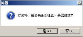 (2)安装前提示是否备份账套,提醒用户保险起见需要备份账套,点否则退出安装。