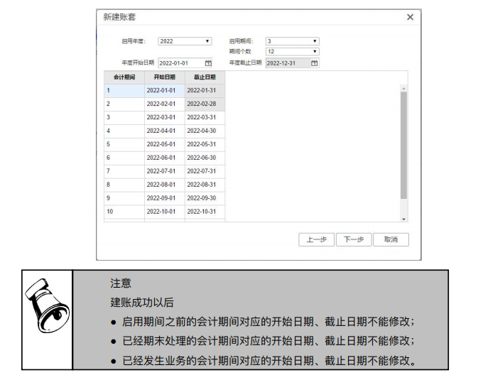输入基本信息后,点击〖下一步〗,进入会计期间。