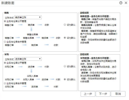 输入财务选项后,点击〖下一步〗,进入业务流程