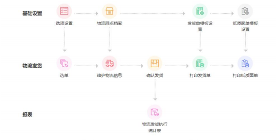 发货合单规则:确认发货时,按照所勾选条件,将条件相同的发货依据合为一张发货单。物流网点档案设置作为物流发货的物流网点档案。增加可进行物流发货的网点信息。发货仓库明细为物流网点默认的发货仓,发货明细为物流发货司机及车辆信息。发货单模板设置打印发货单的模板设置。