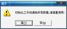 初始化二次确认界面,【是】:进行初始化操作;【否】:取消操作;