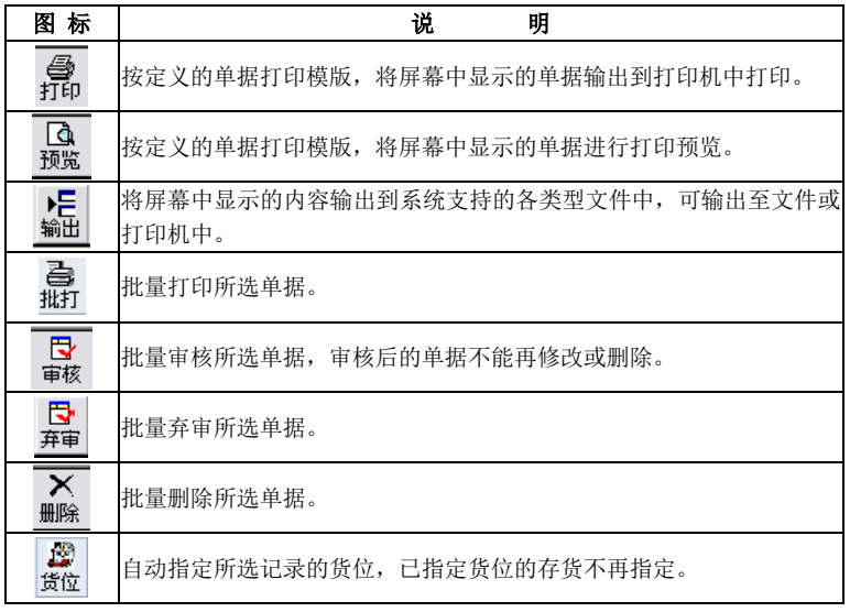 通过单据列表可以查看出入库单据的明细记录,双击当前记录行,则系统显示该行所在的单据卡片,可进行单据常用操作,按〖退出〗后返回单据列表界面;可以选择单据,进行批量打印、批量审核/弃审、批量关闭/打开、批量删除等操作。
