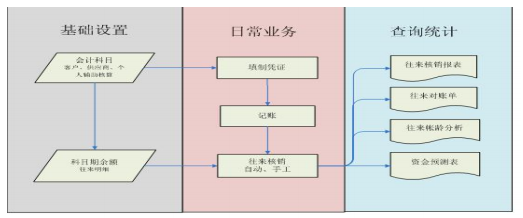 在日常经济业务中,往往在发生了收款或付款业务时,要指明是哪一笔应收或应付,并在收款和应收、付款和应付之间建立勾对关系,这一过程即为核销。总账核销主要是针对同一往来科目的借贷方发生数据之间进行勾对的处理。总账核销提供往来期初维护、手工核销处理、自动核销处理、往来核销查询、往来对账、账龄分析、资金预测等相应的统计查询。