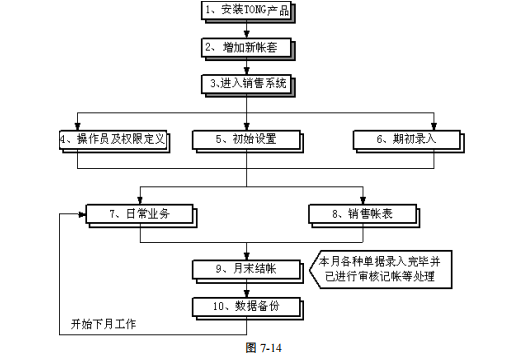 第一次使用销售管理系统时,使用次序如图 7-14: