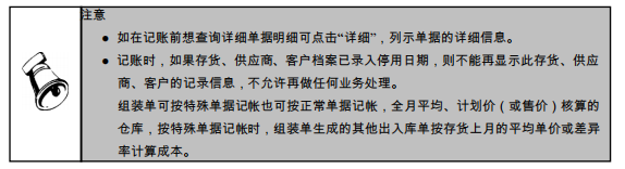 ● 正常单据记账:用于将用户所输入的单据登记存货明细账;