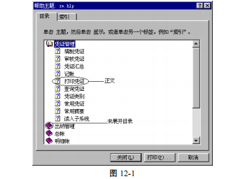 帮助内容的正文全部在【帮助主题】菜单项中。点取【帮助主题】菜单项后,将弹出“帮助主题”对话框如图 12-1。