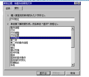 有的名词被选中之后,会弹出“已找到的主题”对话框,在其中列出此名词出现的不同位置。例如选中名词“打印”后,弹出下面对话框,在其中可选择显示有关“打印”的不同内容。