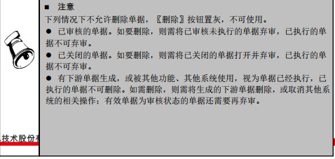  用户要尽量少用〖删除〗按钮删除单据,如果单据确实不正确,可以修改该单据。