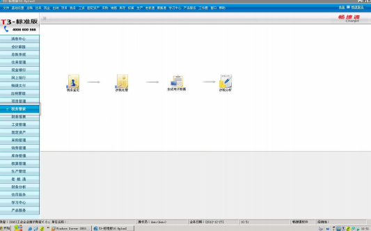 用户点击主界面左侧的【税务管家】菜单或者点击主界面顶部菜单【税务】,进入税务管家的导航界面;