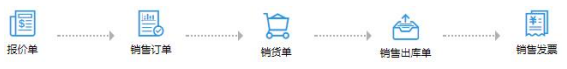 销售助理填制销售订单,引用销售订单生成销货单,业务系统自动记应收账。库管引用销货单生成销售出库单。在此流程中若销货单立账,则销货单既是立账单据也作为发货单转到仓库,库管根据销货单内容做销售出库。