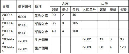 对于 4 月 4 日出库的 11 个存货,由于用户指定了对应的入库单号是 rk002,所以单价是 rk002 单上的单价 3,出库金额为 11×3=33。