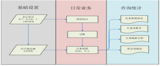 在日常经济业务中,往往在发生了收款或付款业务时,要指明是哪一笔应收或应付,并在收款和应收、付款和应付之间建立勾对关系,这一过程即为核销。总账核销主要是针对同一往来科目的借贷方发生数据之间进行勾对的处理。总账核销提供往来期初维护、手工核销处理、自动核销处理、往来核销查询、往来对账、账龄分析、资金预测等相应的统计查询。
