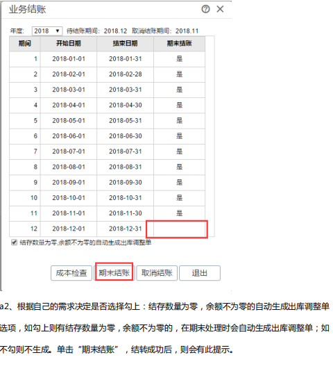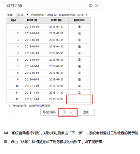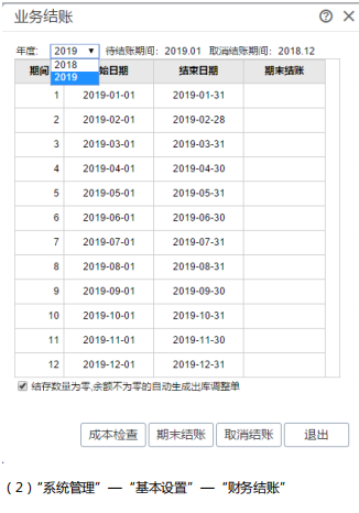 (1)2018 年 12 月业务模块结账,“系统管理”—“基本设置”—“业务结账”,当业务 12