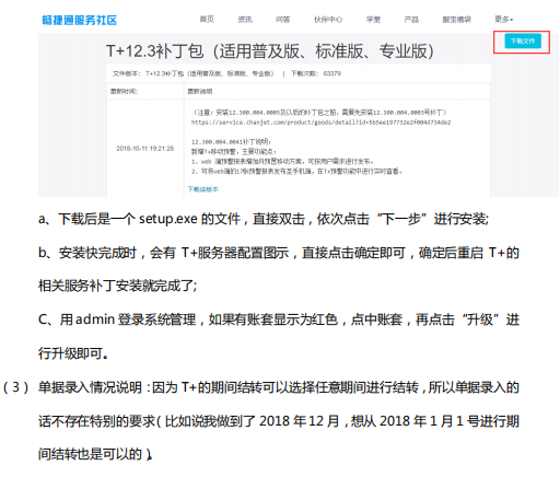 在 T+产品中没有年结概念,用户可以连续将多个年度的数据做在同一账套中。如果在软件使用过程中数据有任何变动都可通过系统管理中的“期间结转”的操作将数据转入到新一账套中继续操作,用户可以在任意已经结账期间进行此项操作。常见的原因有数据量较多或是数据出错等。+的年末处理分为直接结转(直接结账和新建会计期间)和期间结转 2 种。直接结转在数据库中不会有单独的数据库,旧年度和新年度在一个数据库中;而期间结转有点类似 T3 和 T6 的年结,期间结转后在数据库中会生成一个新的账套数据库,与原数据库是分开的。但它的结转方式和 T3 与 T6 有很大的区别,例如最大的一个区别:T+的期间结转可以选择任意一个已经结账的期间进行结转,其他区别本文将一一进行说明。