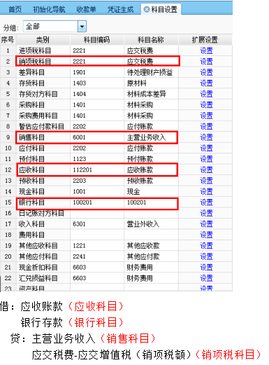 在销货单制单时,按照含税金额带出借方“应收科目” ,按照金额带出贷方“销售科目”,按照税额带出贷方“销项税科目”,