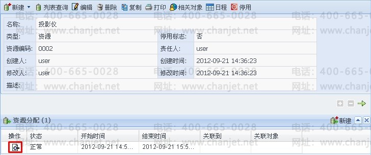 点击资源查看页面相关对像资源分配的查看按钮,进入资源分配查看页面。