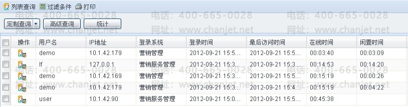 注释:如果用户在使用时非正常退出系统,那么在线用户仍显示此用户在线。