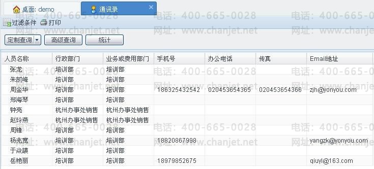 [过滤条件]:设置通讯录列表可供查询的属性。