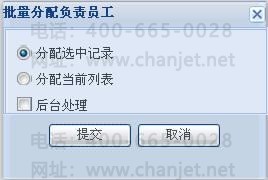 选择要分配的记录点击批量分配相应按钮(或批量收回相应按钮),弹出需要分配(回收)数据的确认窗口。