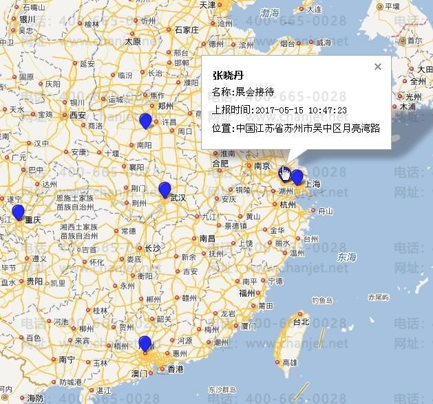  [轨迹]:点击本按钮后,系统打开地图页面,页面中显示出行动在地图上的轨迹。