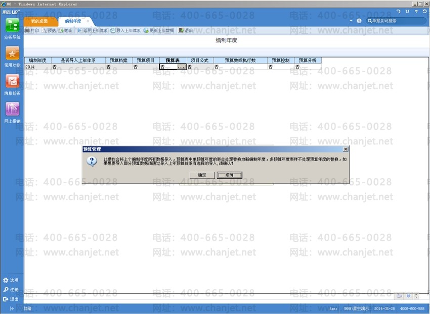 在新编制年度,提供预算体系的导入功能,包括延用上年体系、导入上年体系、更新上年数据功能。