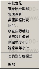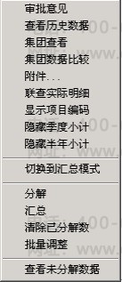  〖查看历史数据〗:预算系统可以保留每次审批不通过的历史数据和审批意见,用户可以在预算目标表上点击鼠标右键菜单查看历史数据,并查看和打印历史审批意见。