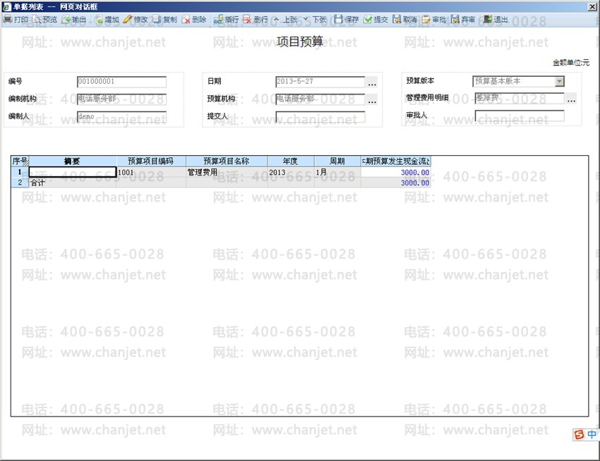 1. 预算编制完成,在列表界面选中要提交的预算数据行,可以多选。或者进入到要提交的数据行的预算编辑界面。