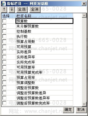 2. 可单独勾选指标,也可通过〖全选〗〖全消〗选择指标。
