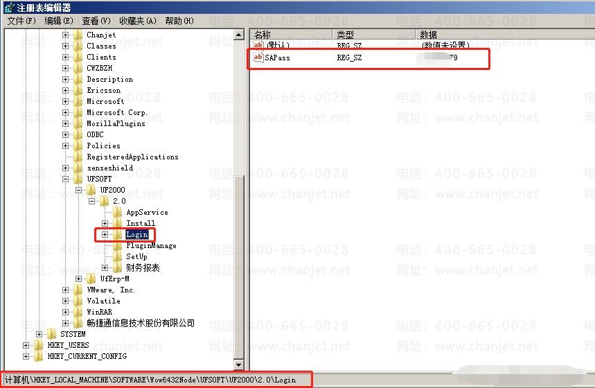 路径:HKEY_LOCAL_MACHINE\SOFTWARE\Wow6432Node\UFSOFT\UF2000\2.0\Login