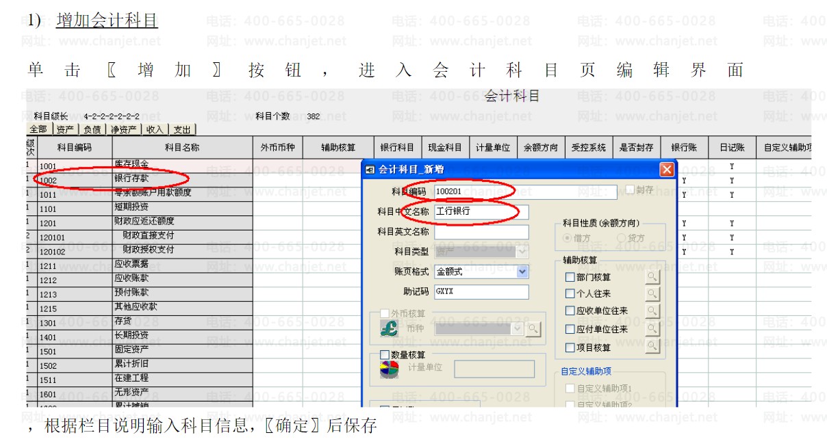 已使用的科目可以增加下级,新增第一个下级科目为原上级科目的全部属性;