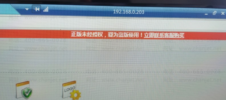 客户来自淘宝,说他的用友畅捷通T+软件出现了一个红色的字条,显示为“正版未经授权,疑为盗版使用!立即联系客服购买”具体为下图