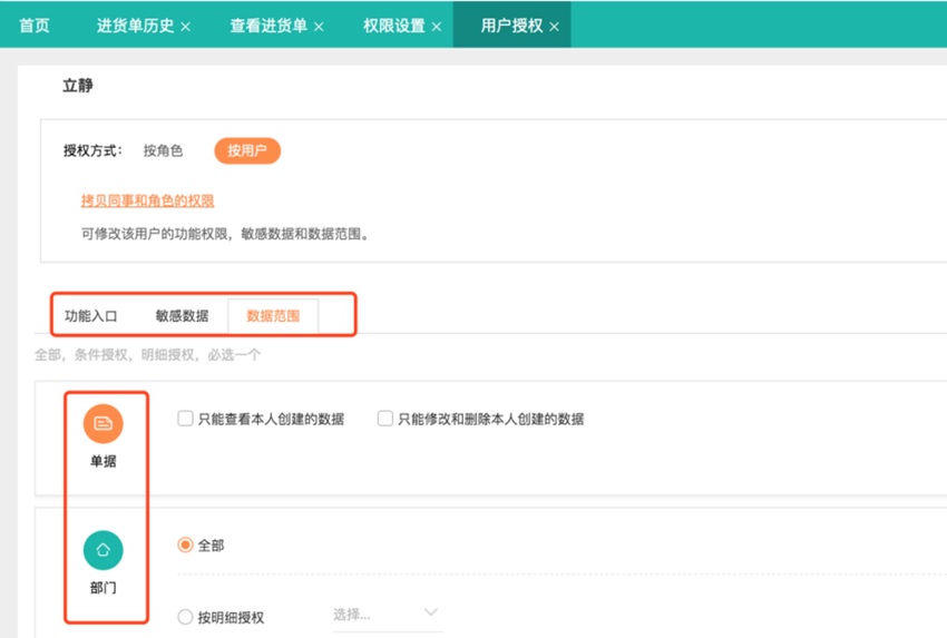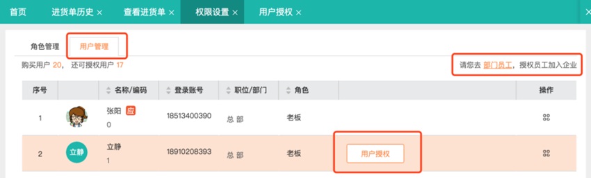 用户列表会同步员工档案,在用户管理中可以为每个员工分别设置权限范围。