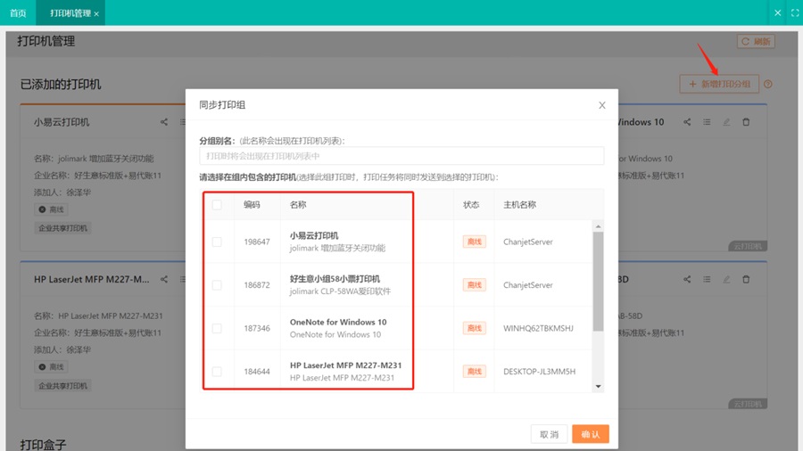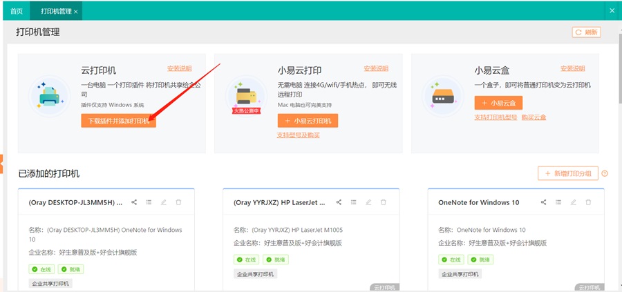 功能介绍:管理已添加的云打印机、小易云打印和小易云盒