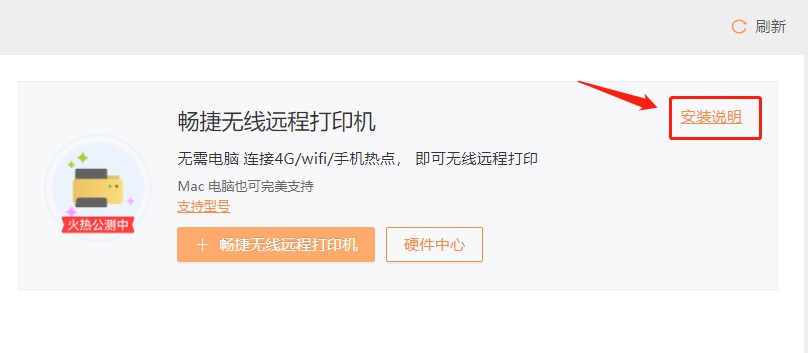 单击支持型号查看支持的打印机,点击【硬件中心】查看详情下单购买