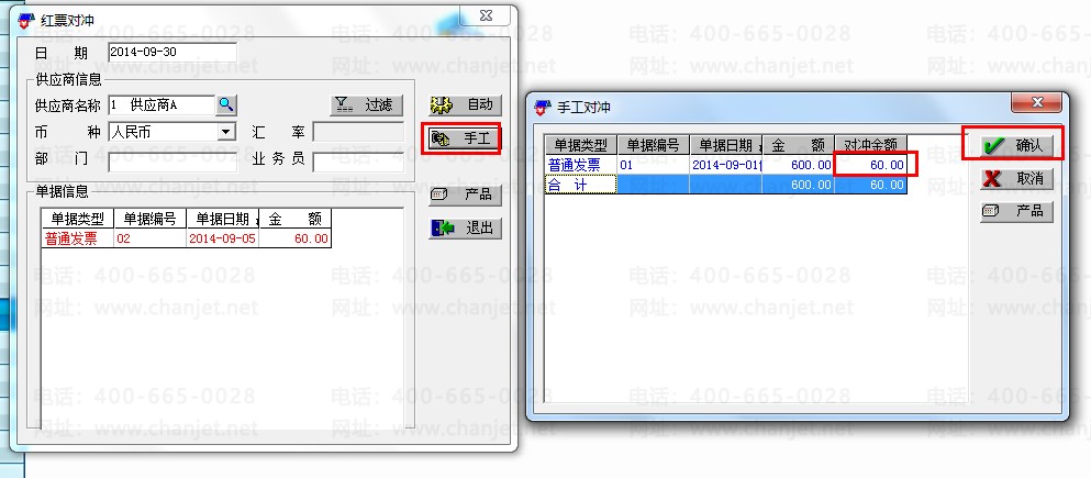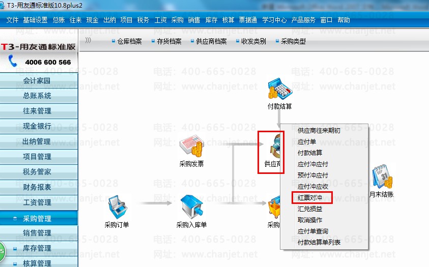 4.红票对冲:选中采购结算中的供应商往来右击选中红票对冲