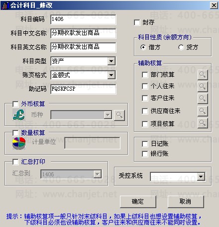 (2)增加会计科目“分期收款发出商品”。点击“基础设置”-“财务”-“会计科目”-“增加”输入科目名称。