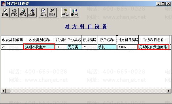 (3)“核算”-“科目设置”-“存货对方科目设置”-“增加”选择“分期收款出库”的出库类型,设置“分期收款出库”出库类型对应的对方科目为“分期收款发出商品”。