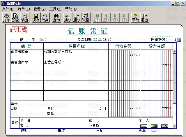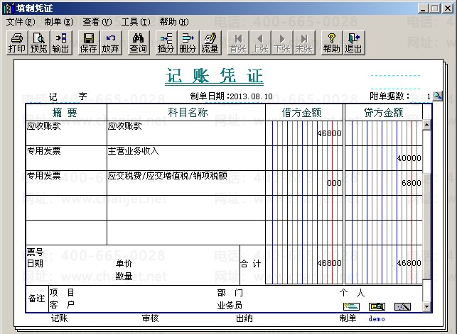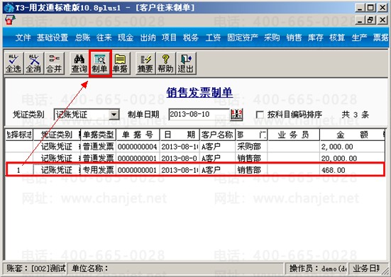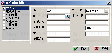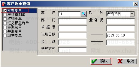 (11)在核算模块点击“客户往来制单”选择“发票制单”后点击“确认”;选择要制单的单据后点击“制单”输入科目名称凭证就生成了。