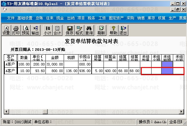 (12)查询“销售”-“销售明细账”-“发货单结算收款勾对表”未开票货物。